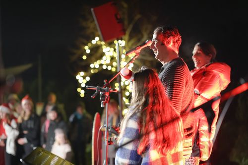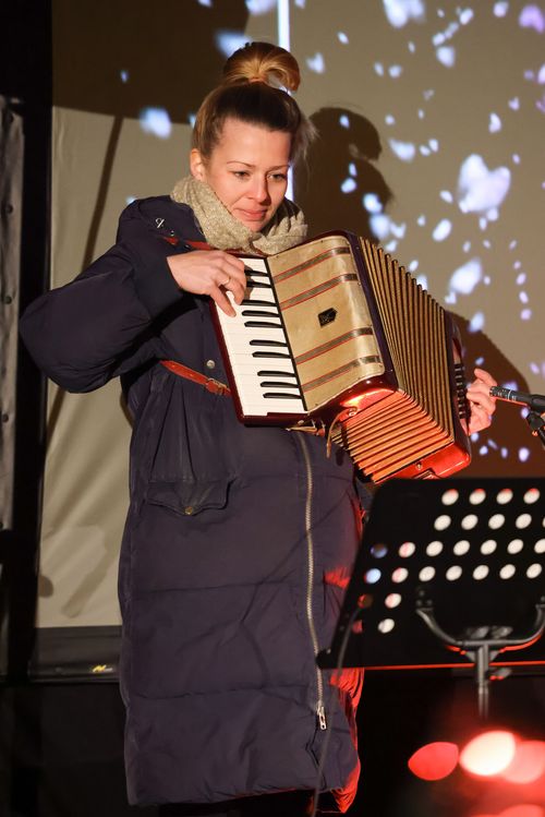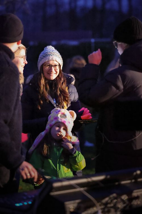 Am frühen Nachmittag haben wir aufgebaut. Wir sind schon geübt für die Gottesdienste immer wieder unsere Technik aufzubauen, aber dies draußen zu tun hatte noch paar Herausforderungen für uns bereit. Die Instrumente und Stimmen wurden bei den eisigen Temperaturen eingestimmt. Um kurz nach 16 Uhr fing das Winter Wonderland mit einer Begrüßung von der Gastgeberin Nadine Reiners an.